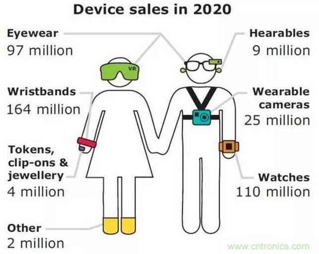 各類可穿戴設(shè)備市場(chǎng)的預(yù)測(cè)示意圖