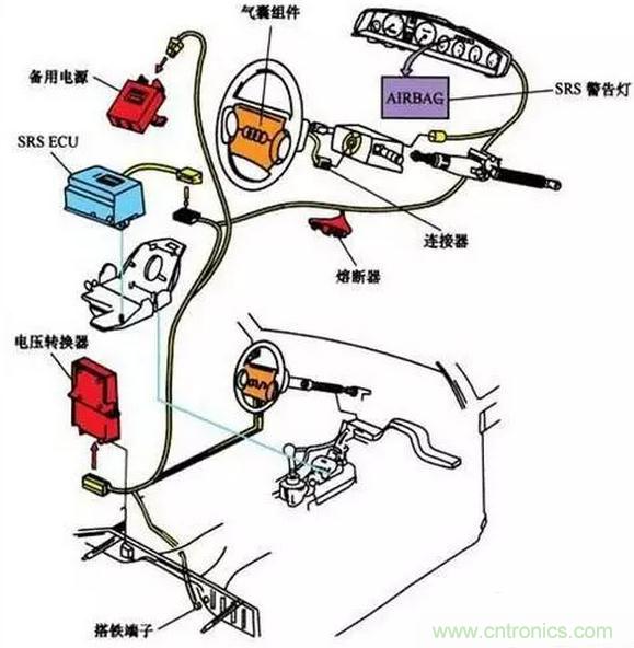 3)車身電子控制系統(tǒng)包括安全氣囊系統(tǒng)、自動(dòng)空調(diào)系統(tǒng)、電子儀表系統(tǒng)及防盜系統(tǒng)等。