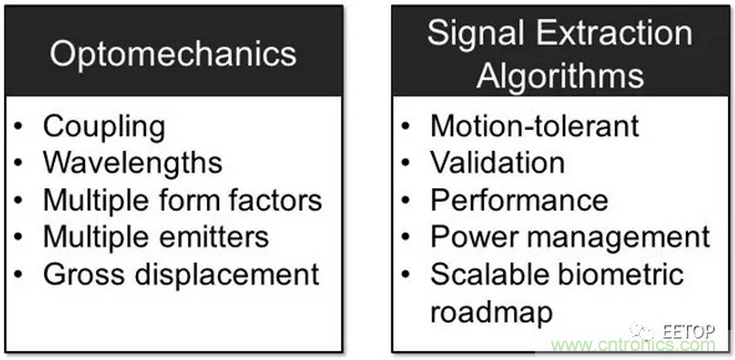 圖3:集成光學心率傳感器的主要挑戰(zhàn)